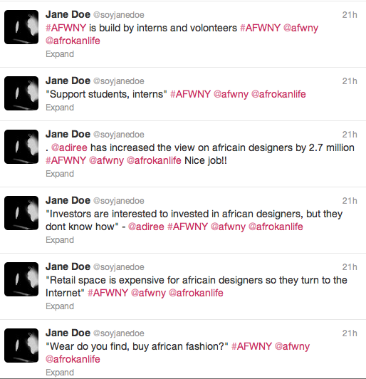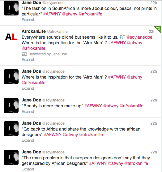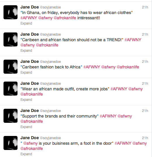 Pour plus de photos, suivez-nous sur Instagram : afrokanlife. De plus, pour vivre la AFWNY en temps réel, direction Twitter: @afrokanlife @soyjanedoe et@botanikap!