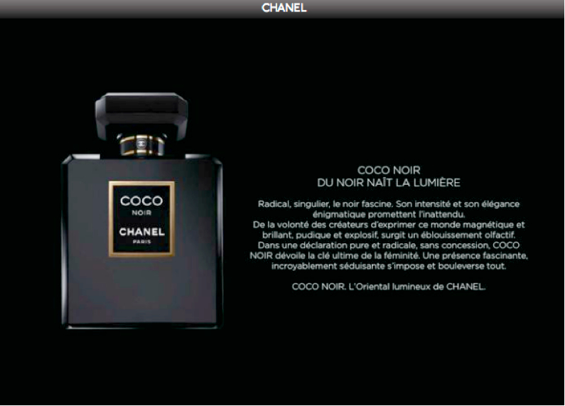 Un flacon noir magnétique, une fragrance de lumière et de mystère, un sillage sensuel intensément féminin. COCO NOIR de Chanel est l’oriental lumineux.