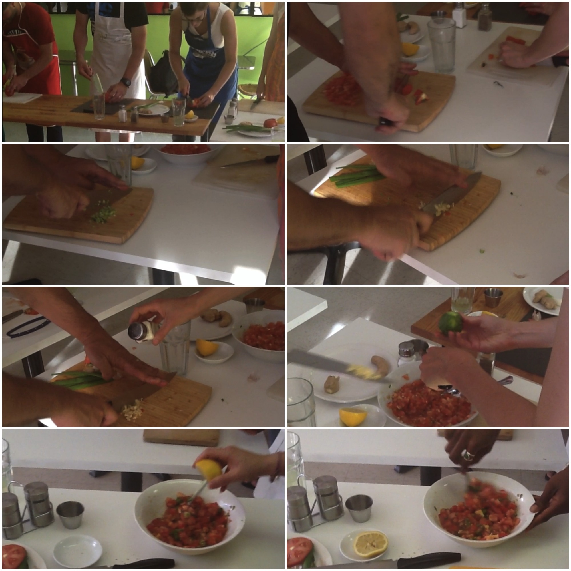 Recette du rougail au combava en six étapes : 1.Découper les tomates en très petits dés. 2.Découper deux tiges d’oignons verts en petits dés. 3. Découper une gousse d’ail. Astuce : pour faciliter le découpage, saler l’ail! 4. Râper le cambava et ajouter son zeste au mélange. 5. Ajouter du jus de citron. 6. Mélanger le tout! C’est prêt!