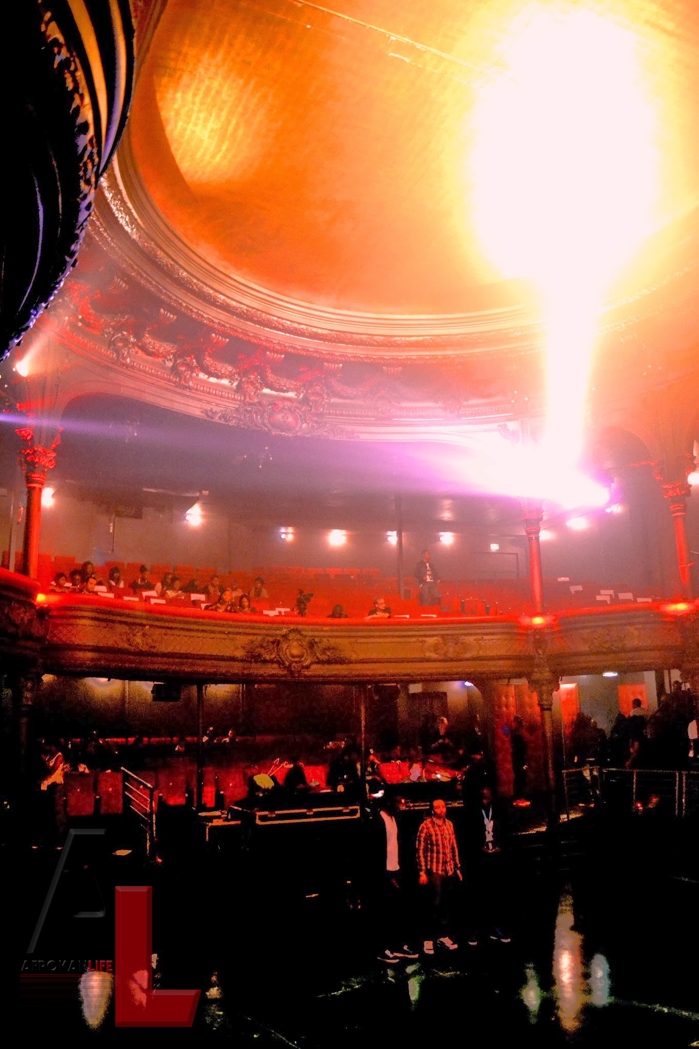 À l’entrée, la foule s’agglutine au fur et à mesure que le temps passe. Véritable échange musical, corporel et visuel venant de villes différentes, de milieux et secteurs différents. Dans cette salle mythique qu’est La Cigale, l’intérieur est riche en décors : fauteuils rouges, dorure au plafond orné de moulures, lumière tamisée. Les spots reflètent la couleur or et rouge donnant ainsi un aspect cuivré à la salle qui laissait une empreinte chaleureuse sur les participants finissant leurs dernières répétitions.