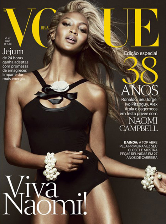 La top model britannique Naomi Campbell en blonde pour la couverture de l’édition brésilienne de Vogue à l’occasion du 38e anniversaire du magazine!
