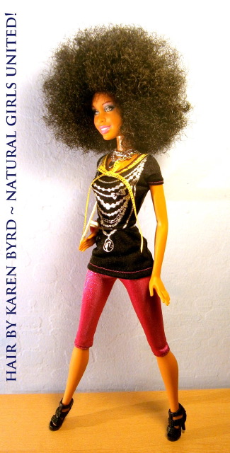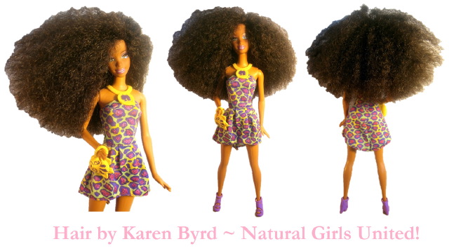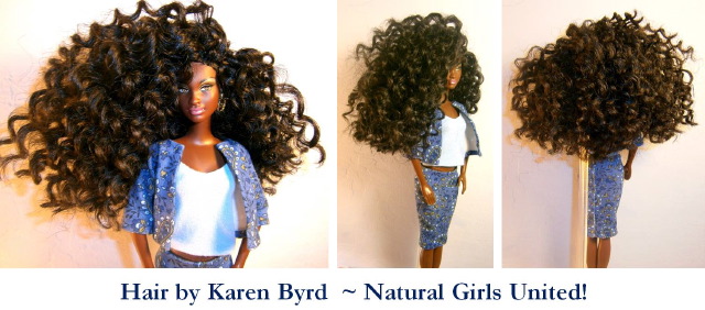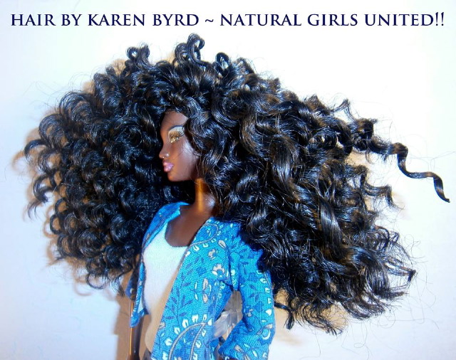 Après la poupée noire, je découvre plus récemment la poupée aux cheveux naturels. Je suis sûre que si j’avais eu cette poupée-là dans mon enfance j’aurais chéri mes cheveux dès ce moment-là, je n’aurais pas voulu à tout prix les défriser (attention, je n’ai rien contre les cheveux défrisés, je préfère juste les miens en mode naturels). Aussi, c’est normal que ces poupées me touchent. C’est une initiative de Karen Byrd :